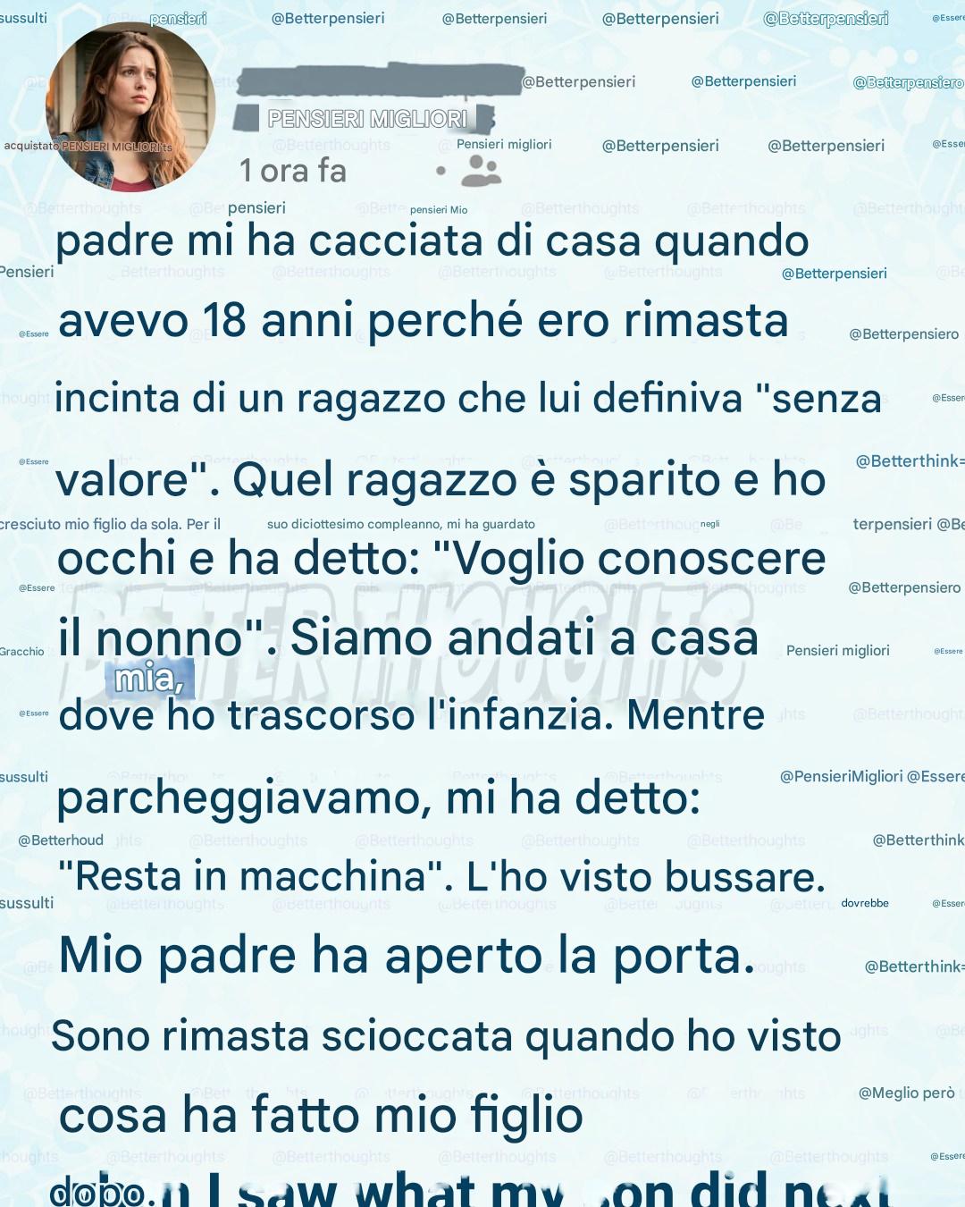 Il ragazzo che mi aveva messo incinta era uno che mio padre definiva “un buono a nulla”. A dire il vero, forse aveva ragione. Nel momento in cui le cose si fecero difficili, quel ragazzo scomparve dalla mia vita come fumo nel vento. Nessun addio. Nessuna spiegazione. Nessuna responsabilità. E così, all’improvviso, mi ritrovai sola.