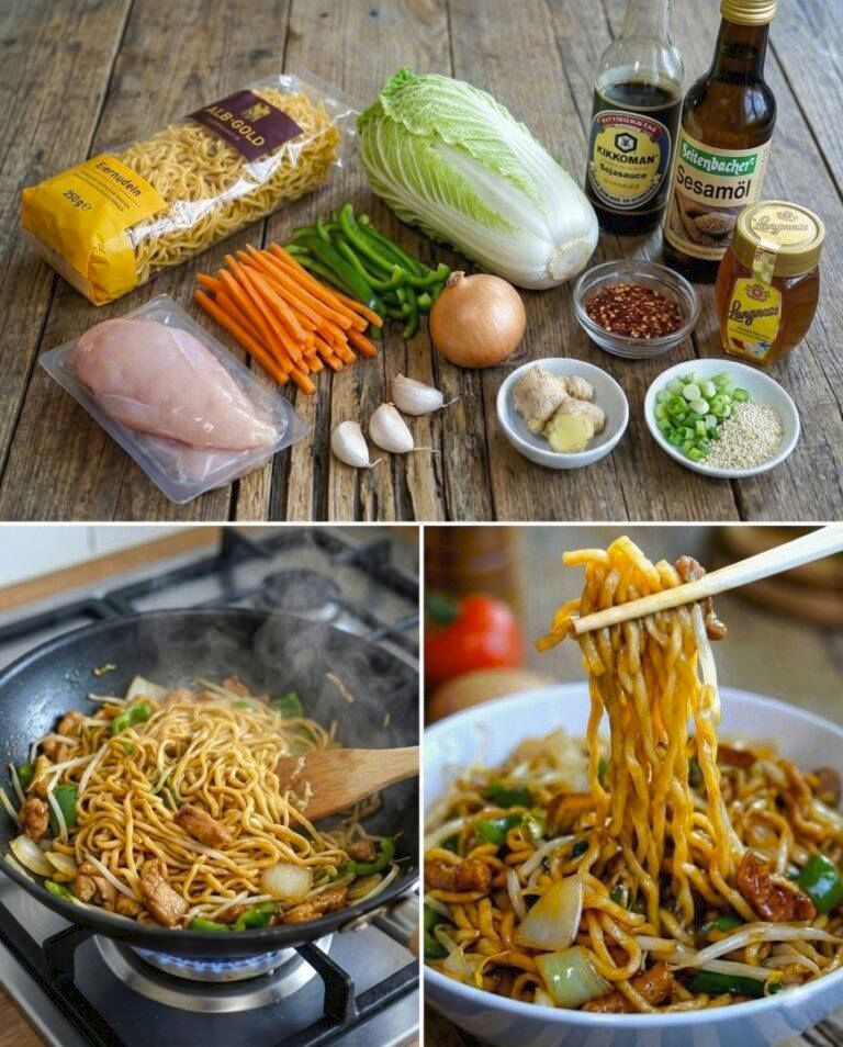 Questa ricetta unisce noodles teneri a verdure croccanti, pollo succulento e una salsa armoniosamente bilanciata che lega tutti gli ingredienti. Il delicato aroma dell’aglio, il leggero sentore di bruciato del wok e la combinazione di salsa di soia e salsa di ostriche creano un’autentica atmosfera asiatica nella vostra cucina mentre cucinate. Allo stesso tempo, il piatto è così semplice e pratico da essere perfetto per un pranzo o una cena veloci.